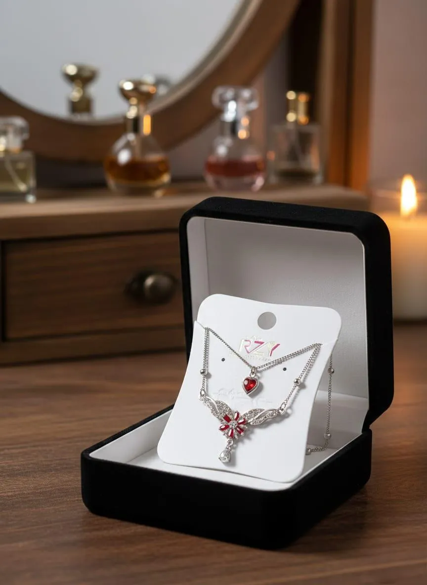 2 Layered Silver Plated Crystal Pendant – Markaz
