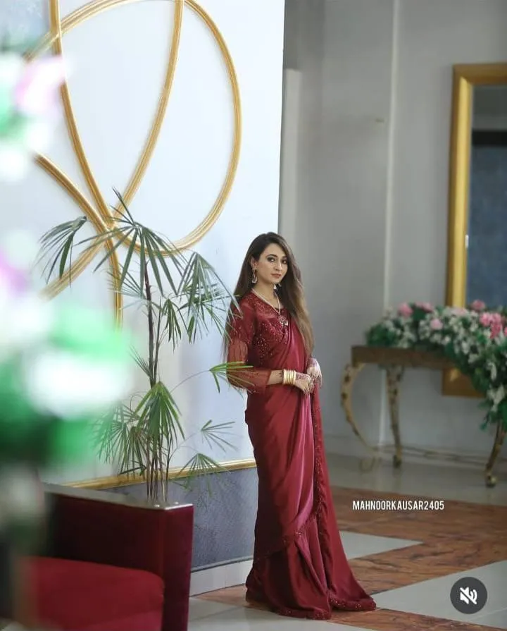 • Fabric: Shamoz Silk• Pattern: Sequins Embroidered• Available Sizes: Standard Size• Number Of Pieces: 2 Pcs• Package Includes: 1 x Saree, 1 x Blouse• Length Size: 40 Inches• Chest Size: 21 Inches• Shoulder Size: 15 Inches• Arm Length Size: 11 Inches• Color: Maroon• Stitch Ready To Wear Saree• Heavy Sequence Embroidered With Pearls Attached Blouse And Four Sided Sequence And Pearls Work On Complete 7 Yards Saree With Petticoat Sequence Seperate Belt• Size Measurement• Blouse Measurement• Blouse Chest 20/21• Blouse Length 17/18• Blouse Fabric Organza (With Crepe Inner Attached)• Petticoat Measurement• Petticoat Length 37/38• Petticoat Stuff Premium Shamose Silk• Saree Measurement• Plated Saree With Four Sided Sequence And Pearls Work• Saree Length 40• Saree Fabric Shamose Silk• Note: There might be an error of 1-3 cm due to manual measurement, and slight color differences may occur as a result of varying lighting and monitor effects.• Product Code: MZ1993200231AACN
