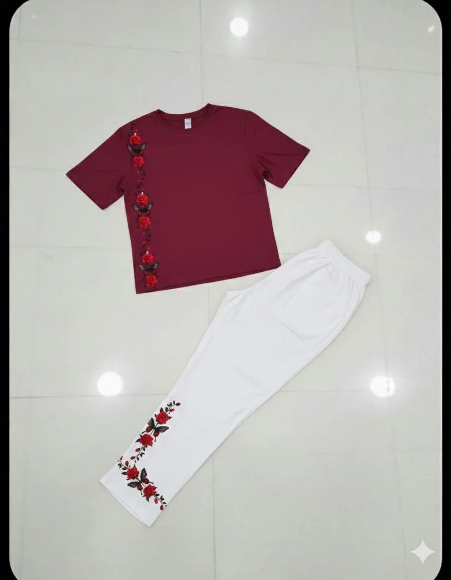 • Fabric: Jersey• Pattern: Printed• Neck Type: Round Neck• Product Feature: Size Chart Attached• Available Sizes: Medium, Large, X-Large• Number Of Pieces: 2 Pcs• Package Includes: 1 x Sleep Shirt, 1 x Sleep Trouser• Shirt Length: 27 Inches• Shirt Chest: 23 Inches• Shirt Shoulder: 15 Inches• Arm Length: 11 Inches• Trouser Length: 39 Inches• Trouser Waist: 36 Inches• Trouser Hip: 23 Inches• Color: Maroon• New Night Suit With Flapper For Women• Shirt Fabric Soft Jersey• Trouser Fabric shimmer Jersey• Sizes• Medium• 18/19 chest• 26 length• Large• 20/21 Chest• 28 length• Extra Large• 22/23 Chest• 30 Length• Trouser Length : 37/38• Note: There might be an error of 1-3 cm due to manual measurement, and slight color differences may occur as a result of varying lighting and monitor effects.• Product Code: MZ2098200674DK