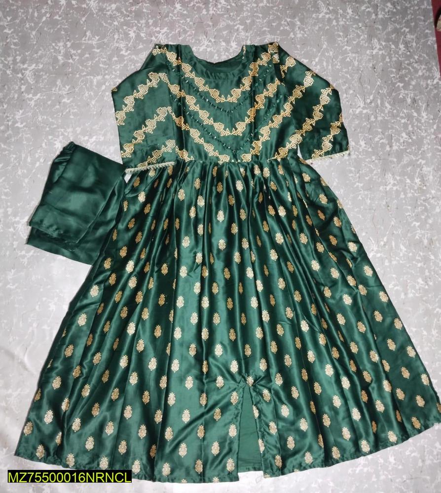 • Fabric: Shamoz Silk• Product Type: Fancy Stitched Suit• Pattern: Embroidered• Neck Type: Round Neck• Size: Standard• Shirt (Chest 20 Inches, Maxi Length 50 Inches, Flare: 80 Inches), Trouser (Length 37 Inches)• Package Includes: 1 x Maxi, 1 x Trouser• Note: There might be an error of 1-3 cm due to manual measurement, and slight color differences may occur as a result of varying lighting and monitor effects.• Product Code: MZ75500016NRNCL