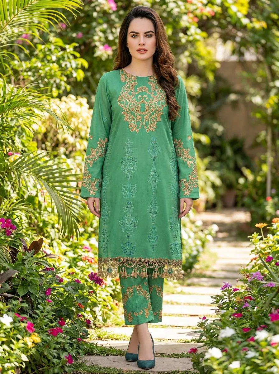 • Shirt Fabric: Linen• Pattern: Embroidered• Trouser Fabric: Linen• Trouser Pattern: Embroidered• Number Of Pieces: 2 Pcs• Package Includes: 1 x Trouser, 1 x Shirt• Shirt Cutting: 2.75 Meter• Trouser Cutting: 2.25 Meter• Color: Green• Embroidered 2 piece suit in wholsale price• Embroidered shart• Embroidered bazu• Embroidered Trozer• All Branded Quality Avalable in wholsale price.• Note: There might be an error of 1-3 cm due to manual measurement, and slight color differences may occur as a result of varying lighting and monitor effects.• Product Code: MZ1745200187GNSRCN