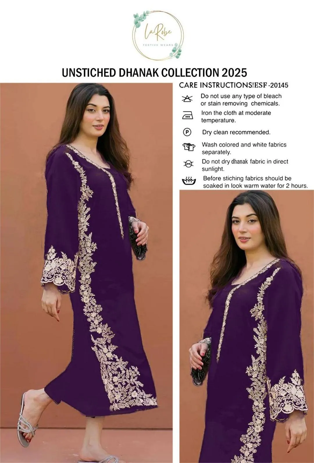 • Shirt Fabric: Lawn• Pattern: Embroidered• Shirt Front Pattern: Embroidered• Neckline: Embroidered• Sleeves Pattern: Embroidered• Daman: Embroidered• Shirt Back Pattern: Plain• Trouser Fabric: Lawn• Trouser Pattern: Plain• Number Of Pieces: 2 Pcs• Package Includes: 1 x Shirt, 1 x Trouser• Shirt Cutting: 2.5 Meter• Trouser Cutting: 2.5 Meter• Color: Purple• Note: There might be an error of 1-3 cm due to manual measurement, and slight color differences may occur as a result of varying lighting and monitor effects.• Product Code: MZ9100000665KZSE