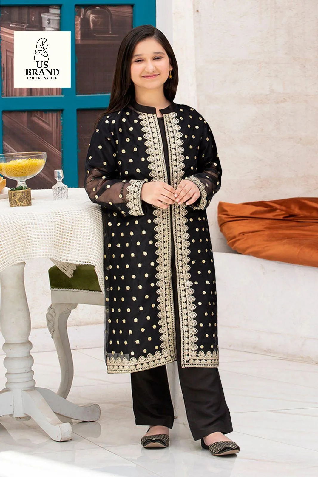 • Material: Shamery• Pattern: Embroidered• Gender: Girl's• Available Sizes: 5-6 Years, 7-8 Years, 8-10 Years, 11-12 Years• Number Of Pieces: 3 Pcs• Package Includes: 1 x Kurta, 1 x Capri, 1 x Trouser• Shirt Length: 30 Inches• Chest: 15 Inches• Trouser Length: 30 Inches• Color: Black• Size Measurements• (30 size 6-8 Years)• Inner Chest Size 15• Inner length 30• Trouser length 30• Gown Chest Size 16• Gown Length 32• (32 size 8-10 Years)• Inner Chest Size 16• Inner length 32• Trouser length 32• Gown Chest Size 17• Gown Length 34• (34 size 10-12 Years)• Inner Chest Size 17• Inner length 34• Trouser length 34• Gown Chest Size 18• Gown Length 37• Inner Stuff : Shamose Silk• Trouser Stuff : Shamose Silk• Gown Stuff : Organza• Note: There might be an error of 1-3 cm due to manual measurement, and slight color differences may occur as a result of varying lighting and monitor effects.• Product Code: MZ1757200062USCN