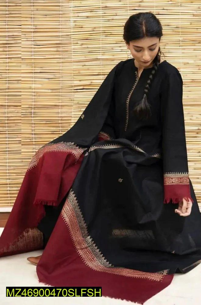 • Fabric: Dhanak• Shirt: Embroidered• Trouser: Plain• Dupatta: Printed Shawl• Cuttings: Shirt: 2.5 Gazz, Trouser: 2.5 Gazz, Dupatta: 2.5 Gazz• Package Includes: 1 x Shirt, 1 x Trousers, 1 x Dupatta• Note: There might be 1-3 cm errors of dimension data due to pure manual measurement• There might be slight color differences due to different light and monitor effects.• Product Code: MZ46900470SLFSH