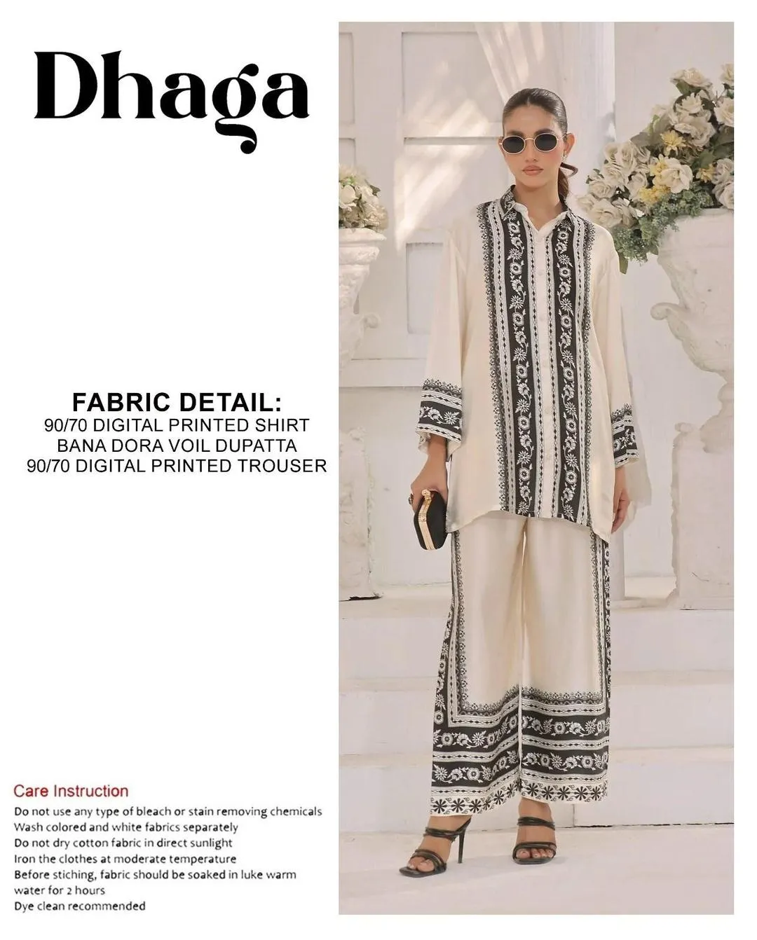 • Shirt Fabric: Lawn• Pattern: Digital Print• Shirt Front Pattern: Digital Print• Neckline: Printed• Sleeves Pattern: Digital Print• Daman: Printed• Shirt Back Pattern: Digital Print• Trouser Fabric: Lawn• Trouser Pattern: Printed• Dupatta Fabric: Lawn• Dupatta Pattern: Digital Print• Number Of Pieces: 1 Pc• Color: Off White• Package Includes: 1 x Shirt, 1 x Dupatta, 1 x Trouser• Shirt Cutting: 2.75 Meter• Trouser Cutting: 2.25 Meter• Dupatta Cutting: 2.25 Meter• Note: There might be an error of 1-3 cm due to manual measurement, and slight color differences may occur as a result of varying lighting and monitor effects.• Product Code: MZ64800000303AISDBYADFS