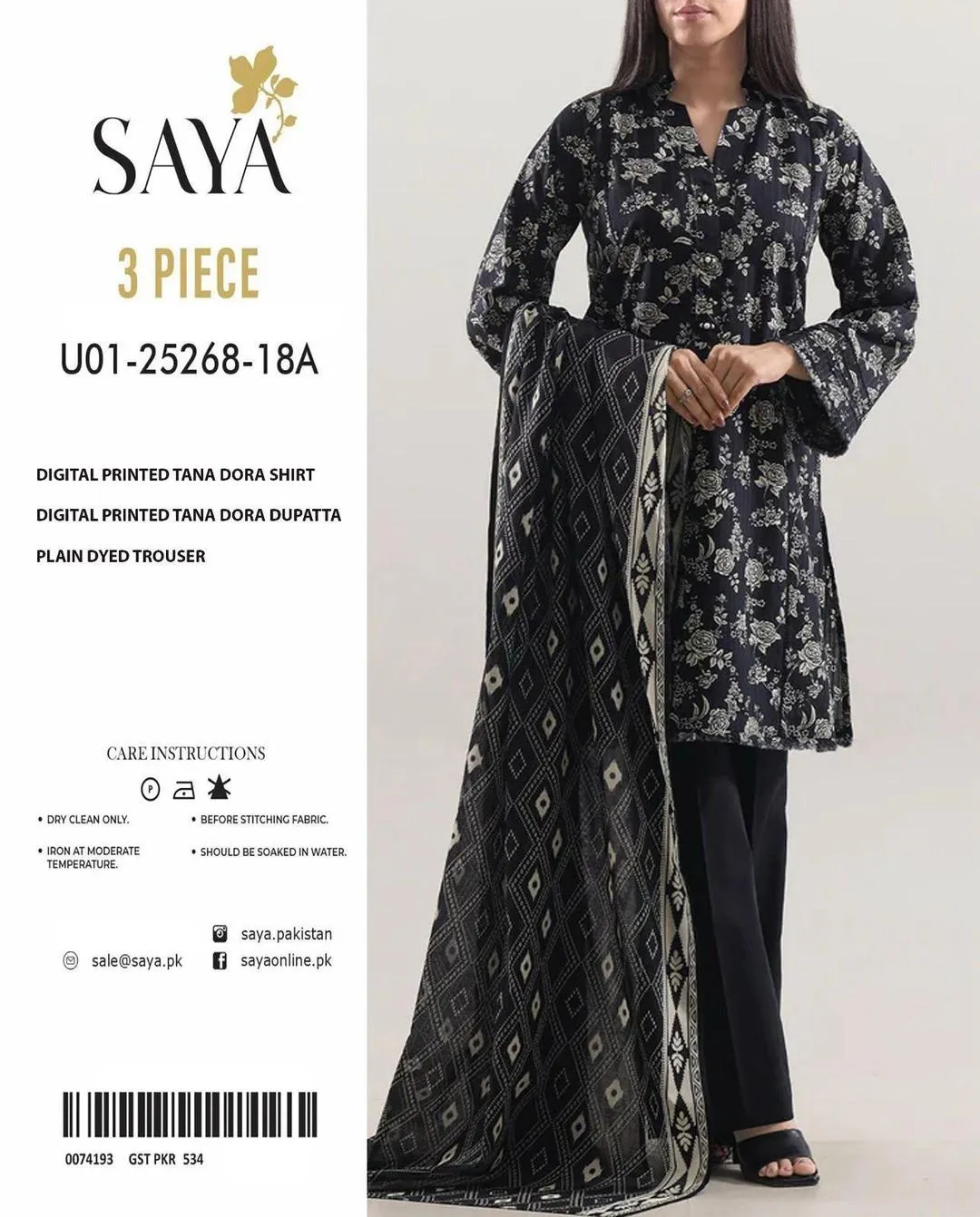 • Shirt Fabric: Lawn• Pattern: Digital Print• Shirt Front Pattern: Digital Print• Neckline: Printed• Sleeves Pattern: Digital Print• Daman: Printed• Shirt Back Pattern: Digital Print• Trouser Fabric: Lawn• Trouser Pattern: Plain• Dupatta Fabric: Lawn• Dupatta Pattern: Digital Print• Number Of Pieces: 3 Pcs• Package Includes: 1 x Shirt, 1 x Trouser, 1 x Dupatta• Shirt Cutting: 2.5 Meter• Trouser Cutting: 2.5 Meter• Dupatta Cutting: 2.5 Meter• Color: Black• Note: There might be an error of 1-3 cm due to manual measurement, and slight color differences may occur as a result of varying lighting and monitor effects.• Product Code: MZ30800000391BZCN