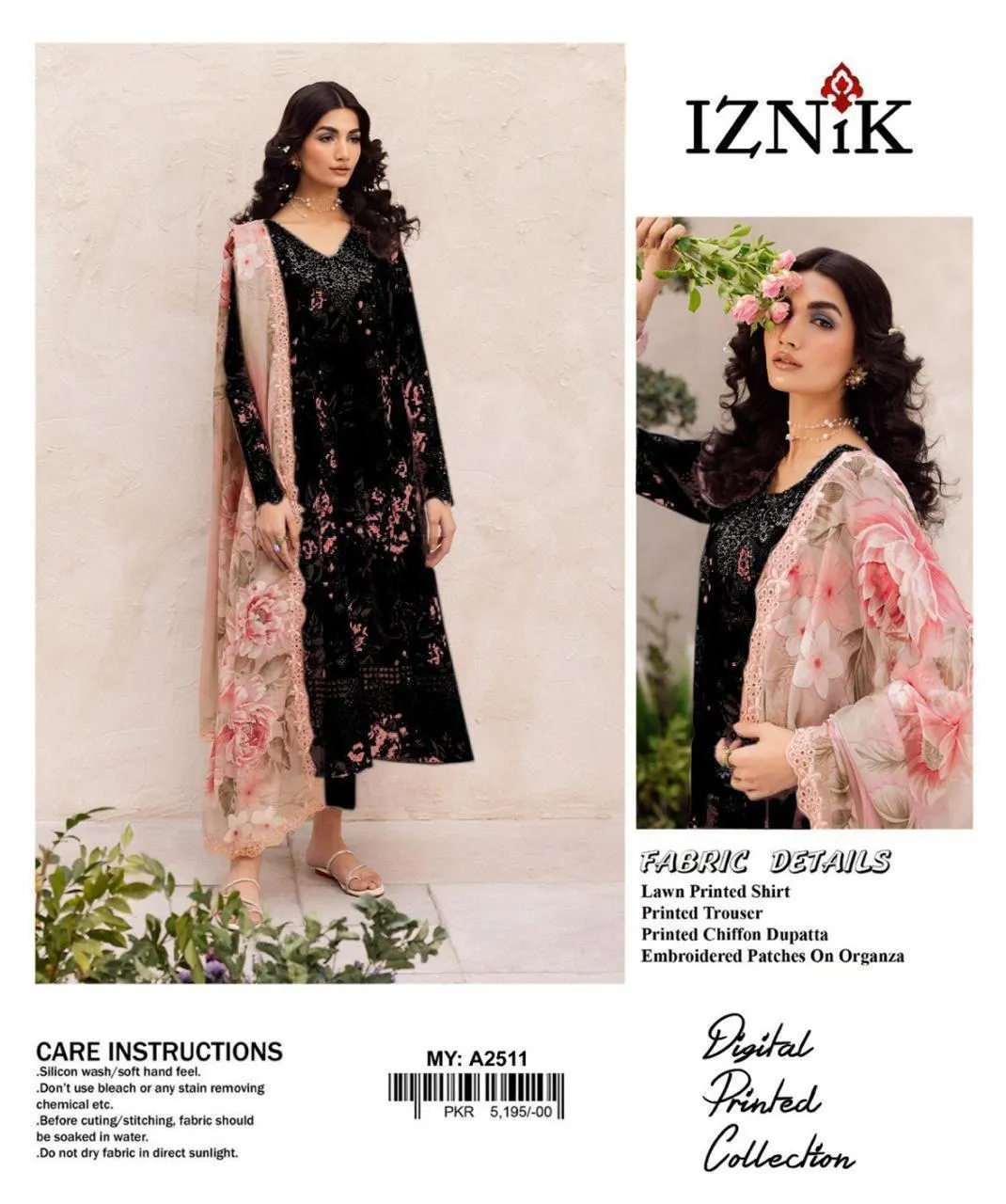 • Shirt Fabric: Lawn• Pattern: Patch Work• Shirt Front Pattern: Chikankari Embroidered• Neckline: Patch Work• Sleeves Pattern: Patch Work• Daman: Patch Work• Shirt Back Pattern: Digital Print• Trouser Fabric: Lawn• Trouser Pattern: Printed• Dupatta Fabric: Chiffon• Dupatta Pattern: Embroidered• Number Of Pieces: 3 Pcs• Package Includes: 1 x Dupatta, 1 x Shirt, 1 x Trouser• Shirt Cutting: 2.5 Meter• Trouser Cutting: 2.5 Meter• Dupatta Cutting: 2.5 Meter• Color: Black• Note: There might be an error of 1-3 cm due to manual measurement, and slight color differences may occur as a result of varying lighting and monitor effects.• Product Code: MZ1734200282MHSE