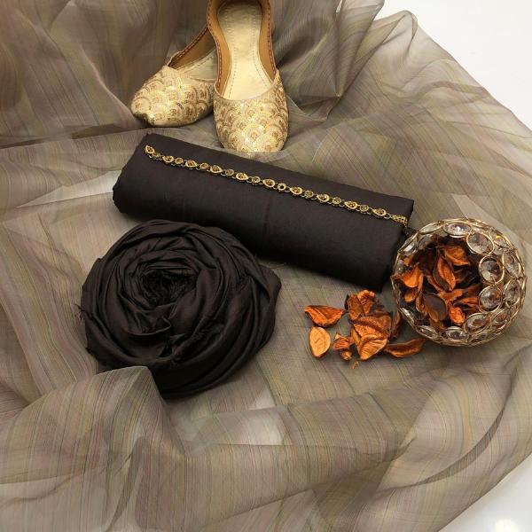 • Shirt Fabric: Katan Silk• Pattern: Plain• Shirt Front Pattern: Plain• Neckline: Embroidered• Sleeves Pattern: Plain• Daman: Embroidered• Shirt Back Pattern: Plain• Trouser Fabric: Katan Silk• Trouser Pattern: Plain• Dupatta Fabric: Organza• Dupatta Pattern: Embroidered• Number Of Pieces: 4 Pcs• Khussa Sizes: 6, 7, 8, 9, 10• Package Includes: 1 x Shirt, 1 x Trouser, 1 x Dupatta• Shirt Cutting: 2.5 Gazz• Trouser Cutting: 2.5 Gazz• Dupatta Cutting: 2.5 Gazz• Color: Brown• Note: There might be an error of 1-3 cm due to manual measurement, and slight color differences may occur as a result of varying lighting and monitor effects.• Product Code: MZ71500001406JSSE