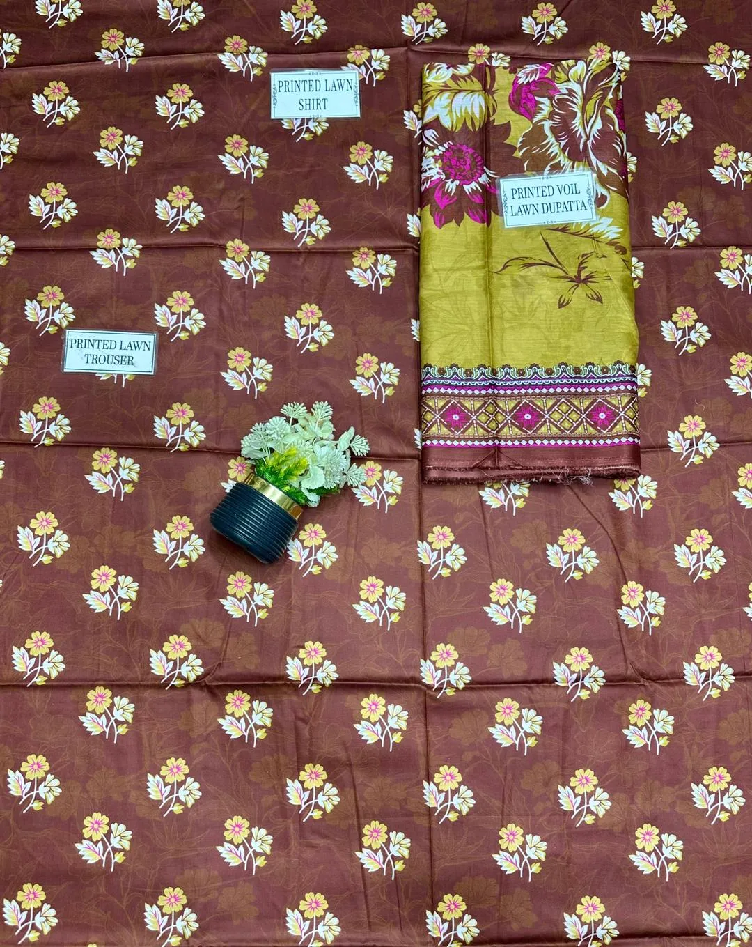 • Shirt Fabric: Lawn• Pattern: Printed• Shirt Front Pattern: Printed• Sleeves Pattern: Printed• Shirt Back Pattern: Printed• Trouser Fabric: Lawn• Trouser Pattern: Printed• Dupatta Fabric: Lawn• Dupatta Pattern: Printed• Number Of Pieces: 3 Pcs• Package Includes: 1 x Shirt, 1 x Dupatta, 1 x Trouser• Shirt Cutting: 3.0 Meter• Trouser Cutting: 2.5 Meter• Dupatta Cutting: 2.5 Meter• Color: Brown• Note: There might be an error of 1-3 cm due to manual measurement, and slight color differences may occur as a result of varying lighting and monitor effects.• Product Code: MZ32200002816BSAE