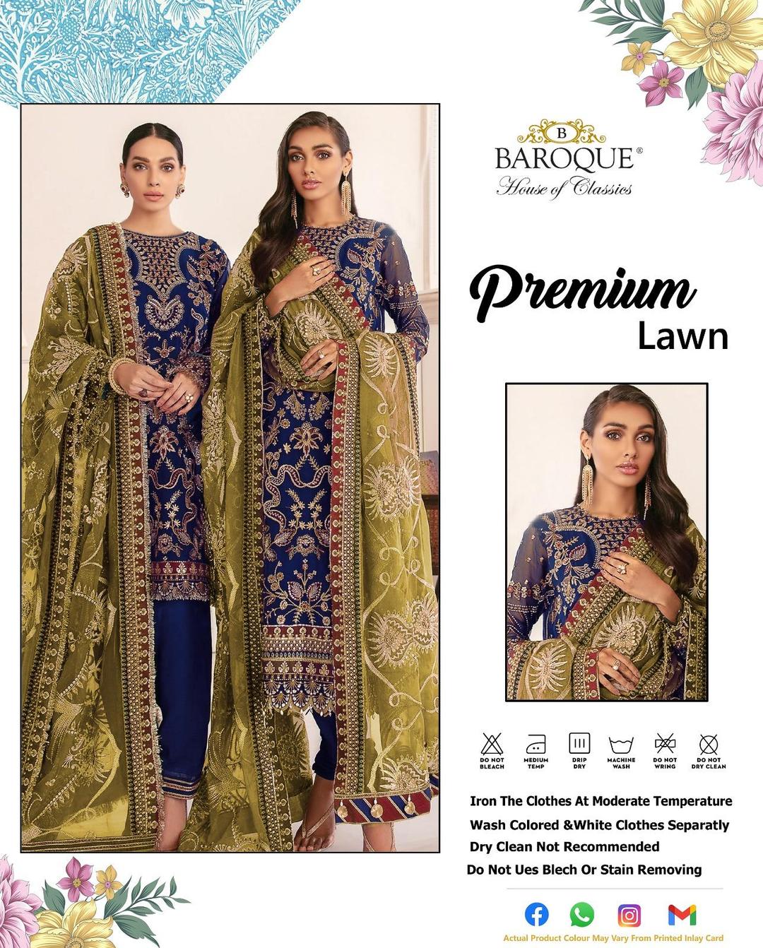 • Shirt Fabric: Lawn• Pattern: Sequins Embroidered• Shirt Front Pattern: Sequins Embroidered• Neckline: Patch Work• Sleeves Pattern: Embroidered• Daman: Patch Work• Shirt Back Pattern: Plain• Trouser Fabric: Lawn• Trouser Pattern: Embroidered• Dupatta Fabric: Bamber• Dupatta Pattern: Embroidered• Number Of Pieces: 3 Pcs• Package Includes: 1 x Shirt, 1 x Trouser, 1 x Dupatta• Shirt Cutting: 3 Meter• Trouser Cutting: 2.25 Meter• Dupatta Cutting: 2.25 Meter• Color: Blue• Note: There might be an error of 1-3 cm due to manual measurement, and slight color differences may occur as a result of varying lighting and monitor effects.• Product Code: MZ65300000199RGML