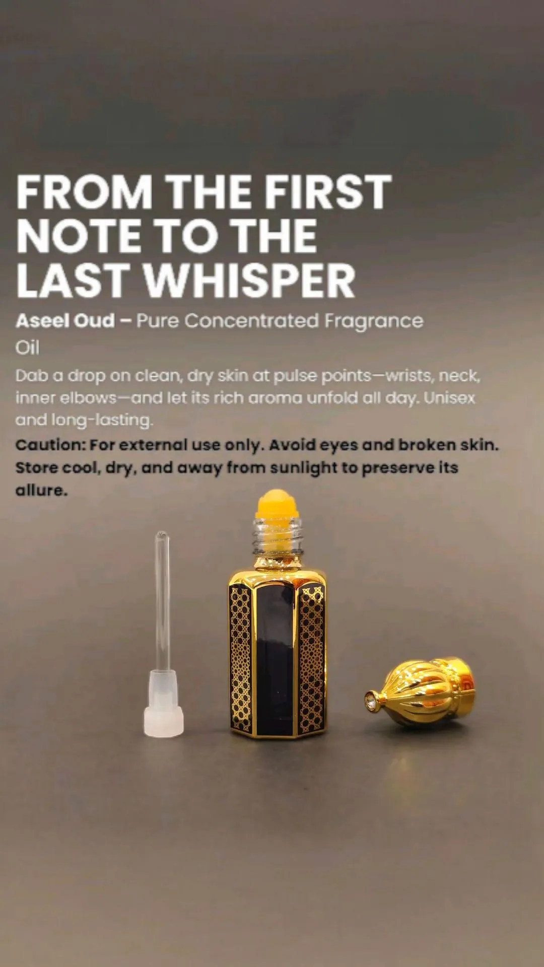 • Fragrance: Hyacinth• Material: Oil• Product Feature: Long Lasting Fragrance, Refreshing, Mood Enhancing• Top Note: Black Pepper, Bergamot• Middle Note: Cinnamon Leaf• Base Note: Cedarwood Atlas• Gender Type: Unisex• Color: Golden• Package Includes: 1 x Attar• Quantity: 3 Ml• Aseel Attar is an Oriental Arabian Fragrance for women and men.• The Fragrance features Oud, Rose of Taif, Incense, Musk, Sandalwood and rare spices.• Attar free from Alcohol.• Note: There might be an error of 1-3 cm due to manual measurement, and slight color differences may occur as a result of varying lighting and monitor effects.• Product Code: MZ32400000108MASGML