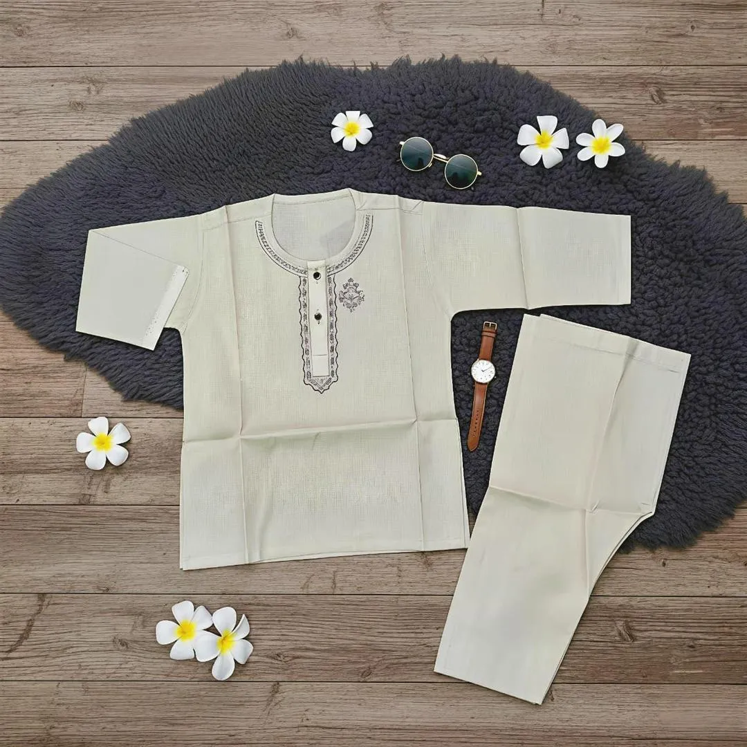 • Material: Cotton• Pattern: Embroidered• Gender: Boy's• Preferred Ages: 1-5 Years• Available Sizes: 14, 16, 18• Number Of Pieces: 2 Pcs• Package Includes: 1 x Kurta, 1 x Shalwar• Color: Multicolor• Note: There might be an error of 1-3 cm due to manual measurement, and slight color differences may occur as a result of varying lighting and monitor effects.• Product Code: MZ1119202255BYBR