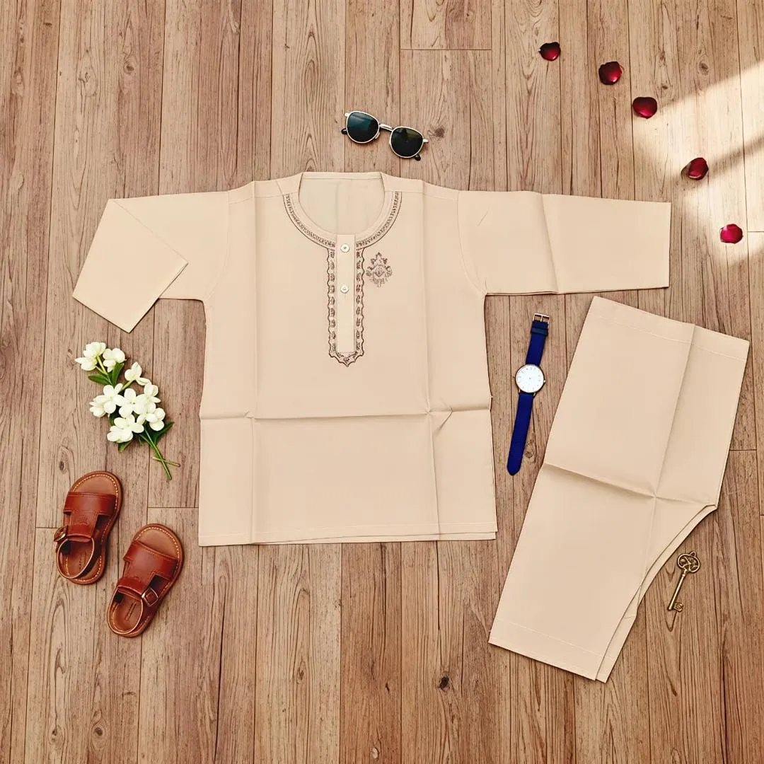• Material: Cotton• Pattern: Embroidered• Gender: Boy's• Preferred Ages: 1-5 Years• Available Sizes: 14, 16, 18• Number Of Pieces: 2 Pcs• Package Includes: 1 x Kurta, 1 x Shalwar• Color: Multicolor• Note: There might be an error of 1-3 cm due to manual measurement, and slight color differences may occur as a result of varying lighting and monitor effects.• Product Code: MZ1119202261BYBR