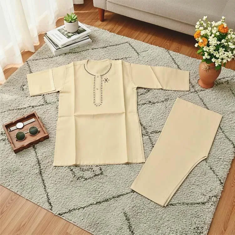 • Material: Cotton• Pattern: Embroidered• Gender: Boy's• Preferred Ages: 1-10 Years• Available Sizes: 20, 22, 24• Number Of Pieces: 2 Pcs• Package Includes: 1 x Shalwar, 1 x Kurta• Color: Multicolor• Note: There might be an error of 1-3 cm due to manual measurement, and slight color differences may occur as a result of varying lighting and monitor effects.• Product Code: MZ1119202265BYBR