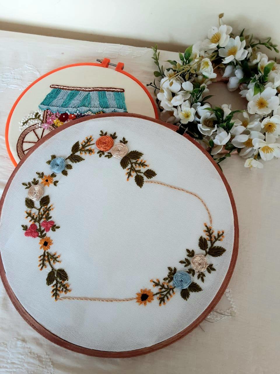 Bring Brazilian Charm to Your Walls This exquisite handmade wall hanging hoop features: - Intricate Brazilian pattern embroidery with precision stitches and love - Handmade by skilled artisans using traditional techniques passed down through generations - Beautiful white cotton fabric provides elegant backdrop for vibrant embroidery threads - Delicate floral and foliage designs evoke feelings of s