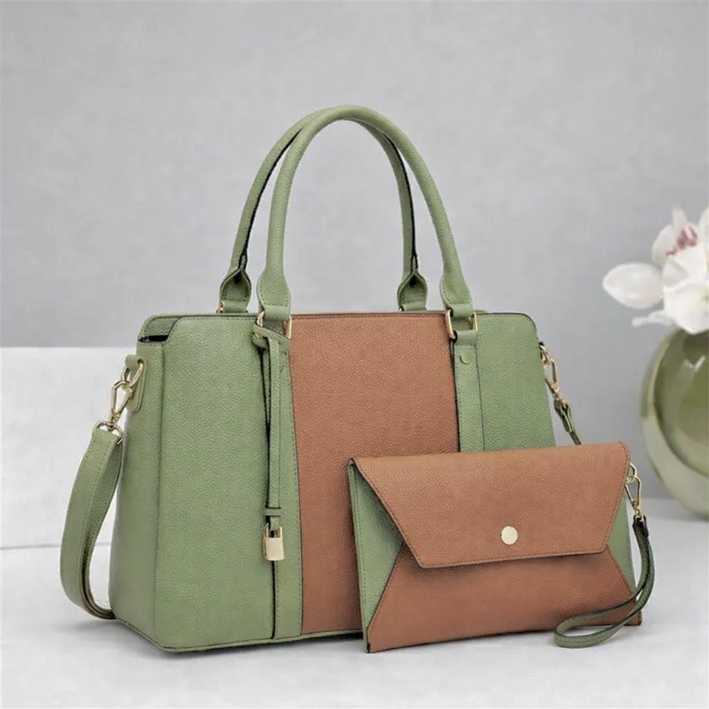 • Material: Leather• Pattern: Plain• Number Of Pieces: 2 Pcs• Product Feature: Top Handle• Gender: Girl's• Color: Green• Package Includes: 1 x Hand Bag Set• Length: 10 Inches• Width: 12 Inches• Note: There might be an error of 1-3 cm due to manual measurement, and slight color differences may occur as a result of varying lighting and monitor effects.• Product Code: MZ1598201824TEWHHB