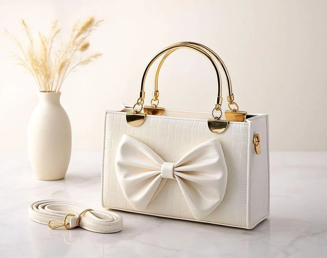 • Material: Leather• Pattern: Plain• Number Of Pieces: 1 Pc• Product Feature: Top Handle• Gender: Girl's• Color: White• Package Includes: 1 x Hand Bag• Length: 8 Inches• Width: 10 Inches• Note: There might be an error of 1-3 cm due to manual measurement, and slight color differences may occur as a result of varying lighting and monitor effects.• Product Code: MZ1598201805TEWHHB