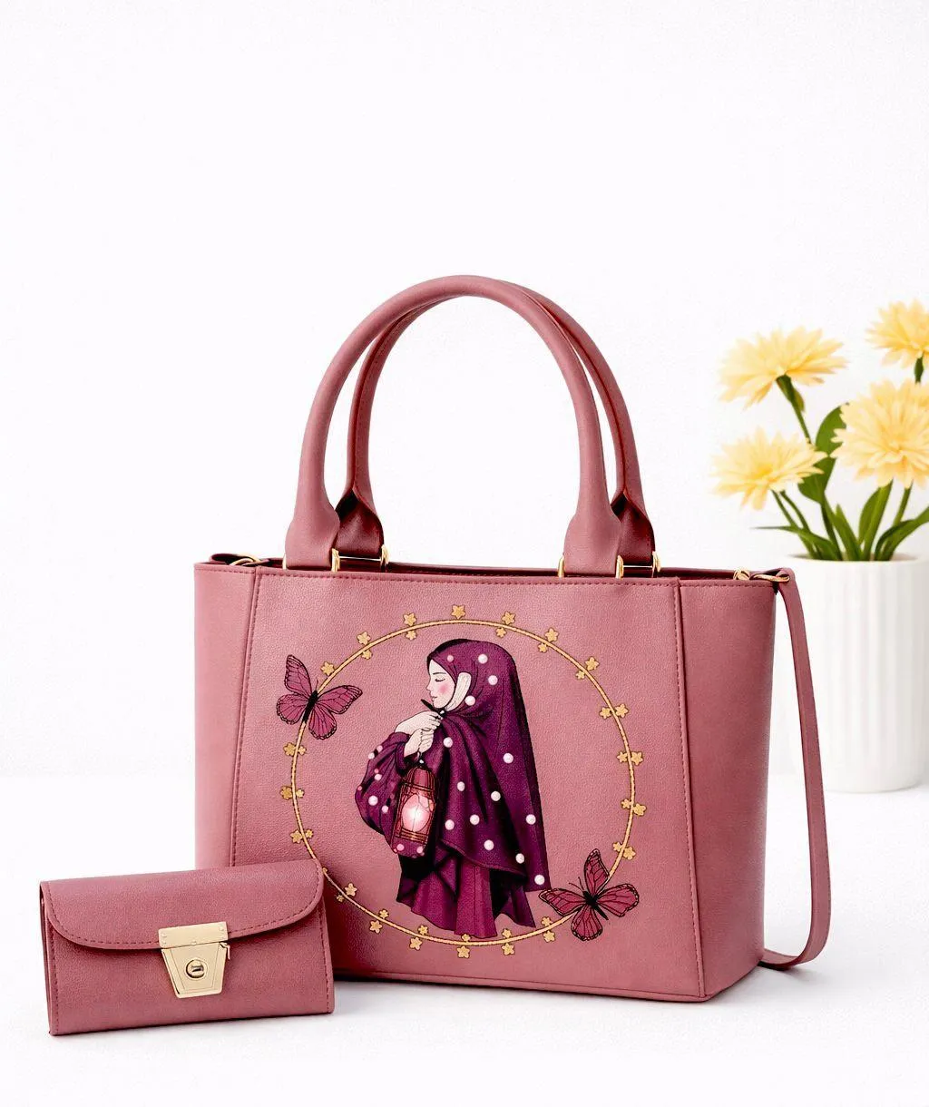 • Material: Leather• Pattern: Printed• Number Of Pieces: 2 Pcs• Product Feature: Top Handle• Gender: Girl's• Color: Pink• Package Includes: 1 x Hand Bag Set• Length: 8 Inches• Width: 10 Inches• Note: There might be an error of 1-3 cm due to manual measurement, and slight color differences may occur as a result of varying lighting and monitor effects.• Product Code: MZ1454200438SHAH