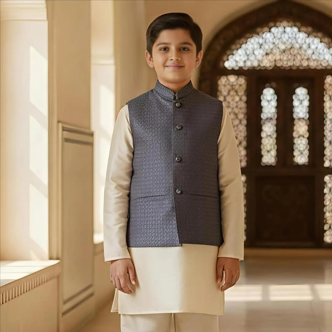 Stylish and comfortable waistcoat designed especially for kids , Made from soft, breathable fabric for all-day. comfort Sleeveless design allows easy movement, Front button closure for a smart and neat look Perfect for parties, weddings, and festive occasions Easy to pair with shirts, kurtas, or trousers