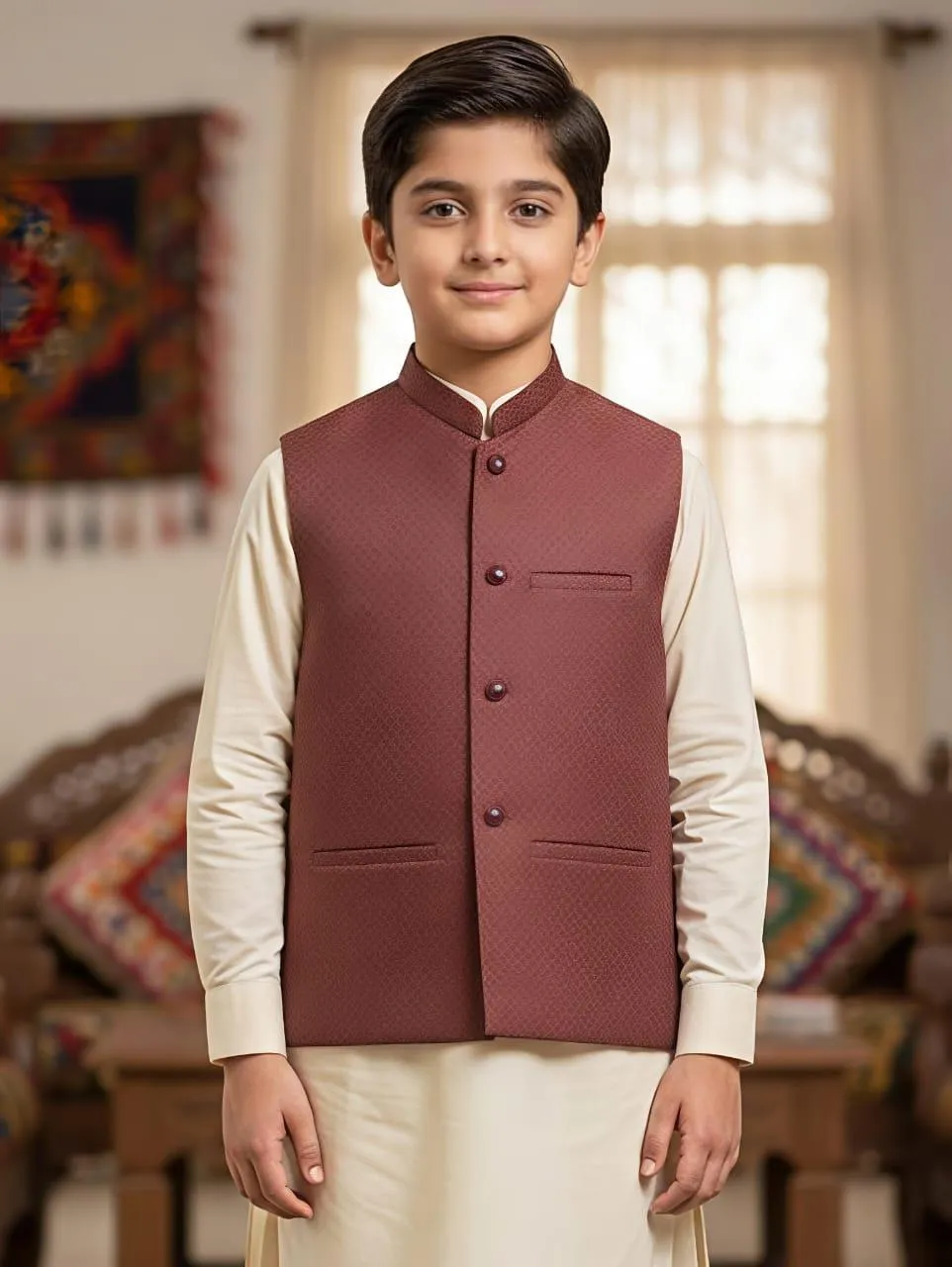 Stylish and comfortable waistcoat designed especially for kids , Made from soft, breathable fabric for all-day. comfort Sleeveless design allows easy movement, Front button closure for a smart and neat look Perfect for parties, weddings, and festive occasions Easy to pair with shirts, kurtas, or trousers