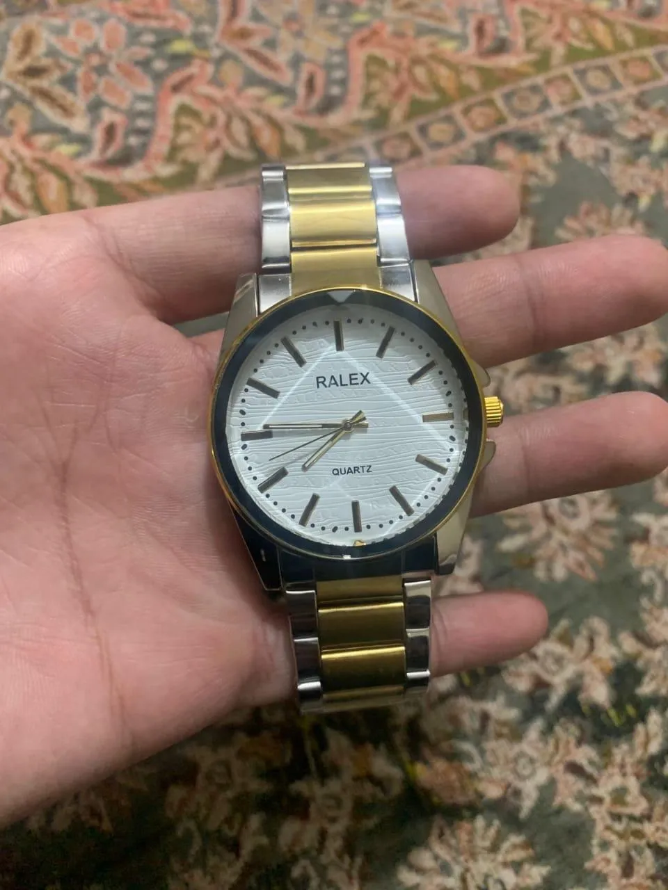 • Material: Stainless Steel• Pattern: Chain Strap• Gender: Men's, Unisex• Watch Case Shape: Round• Display Format: 12-Hour Format• Product Feature: Skin Friendly Strap, Modern Stylish Look• Width: Cm• Number Of Pieces: 1 Pc• Color: Silver• Package Includes: 99 x Chain Watch, 99 x Analogue Watch, 99 x Luxury Watch• Dial Diameter: 6 mm• Length: 6 Cm• Height: 6 Cm• Men’s RALEX Two-Tone Quartz Watch – Classic Style• Elevate your everyday look with this elegant RALEX men’s wristwatch. Designed with a timeless two-tone finish, it combines a gold-tone center bracelet with polished silver-tone links for a refined, versatile appearance.• Key Features:• Brand: RALEX• Movement: Quartz (accurate and low-maintenance)• Dial: White textured dial with minimalist hour markers• Case: Round metal case with gold-tone bezel• Bracelet: Stainless steel two-tone (gold & silver) link band• Display: Analog• Style: Classic / Formal / Everyday wear• Perfect for office wear, formal occasions, or daily use, this watch offers a clean, sophisticated design at great value.• Note: There might be slight color differences as a result of varying lighting and monitor effects.• Product Code: MZ1885200050QRBR