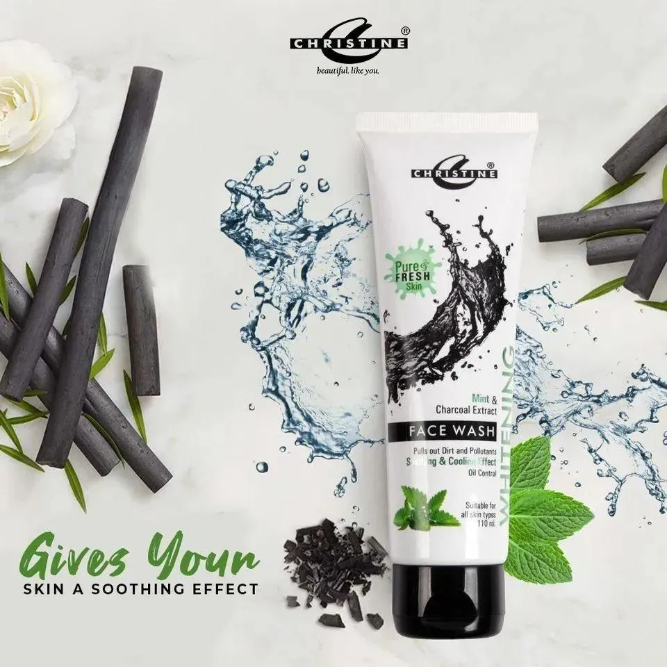 • Material: Liquid• Product Feature: Removes Dirt, Glowing, Whitening• Package Includes: 1 x Face Wash• Volume: 110 Ml• Christine Mint & Charcoal Extract Face Wash - 110 ML• Note: Before using any new cosmetic product, perform a patch test on a small skin area. Verify ingredients for allergies and follow package warnings and directions.• Product Code: MZ2129200005IMCS