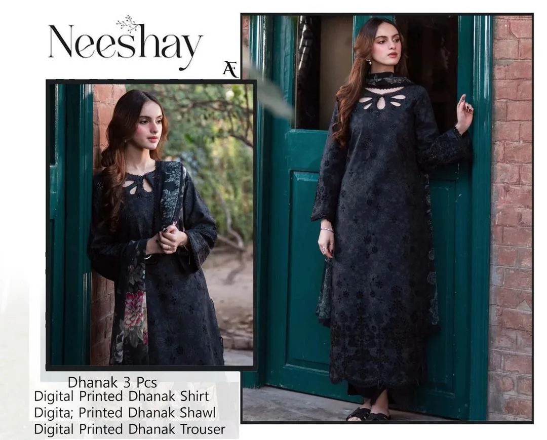 • Shirt Fabric: Dhanak• Pattern: Printed• Shirt Front Pattern: Digital Print• Neckline: Printed• Sleeves Pattern: Digital Print• Daman: Printed• Shirt Back Pattern: Printed• Trouser Fabric: Dhanak• Trouser Pattern: Printed• Dupatta Fabric: Dhanak• Dupatta Pattern: Digital Print• Number Of Pieces: 3 Pcs• Color: Black• Package Includes: 1 x Dupatta, 1 x Shirt, 1 x Trouser• Shirt Cutting: 2.5 Meter• Trouser Cutting: 2.5 Meter• Dupatta Cutting: 2.25 Meter• Note: There might be an error of 1-3 cm due to manual measurement, and slight color differences may occur as a result of varying lighting and monitor effects.• Product Code: MZ2029200002BNSMCN