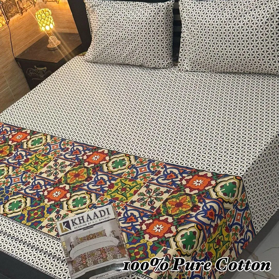 • Fabric: Cotton• Pattern: Printed• Bed Size: Double Bed• Number Of Pieces: 3 Pcs• Package Includes: 1 x Bedsheet, 2 x Pillow Covers• Bedsheet Length: 98 Inches• Bedsheet Width: 9 Inches• Pillow Length: 29 Inches• Pillow Width: 19 Inches• Color: Multicolor• Note: There might be an error of 1-3 cm due to manual measurement, and slight color differences may occur as a result of varying lighting and monitor effects.• Product Code: MZ1102200292ANCN