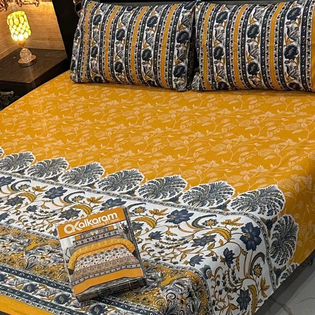 • Fabric: Mix Cotton• Pattern: Printed• Bed Size: Double Bed• Number Of Pieces: 3 Pcs• Package Includes: 1 x Bedsheet, 2 x Pillow Covers• Bedsheet Length: 98 Inches• Bedsheet Width: 98 Inches• Pillow Length: 29 Inches• Pillow Width: 19 Inches• Color: Yellow• Note: There might be an error of 1-3 cm due to manual measurement, and slight color differences may occur as a result of varying lighting and monitor effects.• Product Code: MZ1102200308ANCN