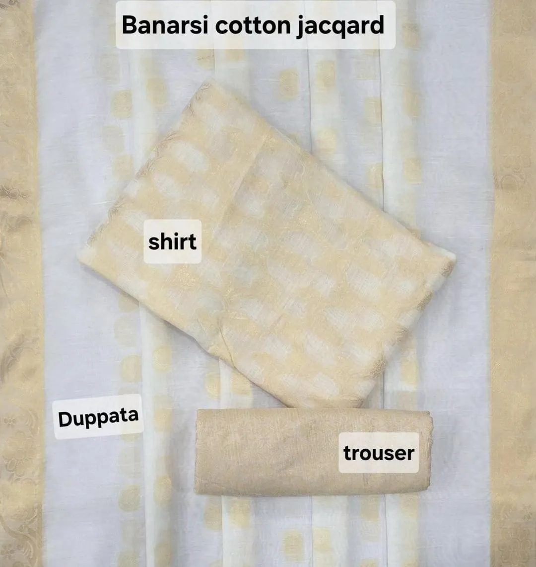 • Shirt Fabric: Cotton Jacquard• Pattern: Embroidered• Shirt Front Pattern: Embroidered• Trouser Fabric: Banarsi• Dupatta Fabric: Cotton• Number Of Pieces: 3 Pcs• Package Includes: 1 x Shirt, 1 x Dupatta, 1 x Trouser• Shirt Cutting: 2.5 Gazz• Trouser Cutting: 2 Gazz• Dupatta Cutting: 2.5 Gazz• Color: White• Payment sa pehla aik dress open krka check krna ki permission ha• Note: There might be an error of 1-3 cm due to manual measurement, and slight color differences may occur as a result of varying lighting and monitor effects.• Product Code: MZ1929200021BTEEAACN