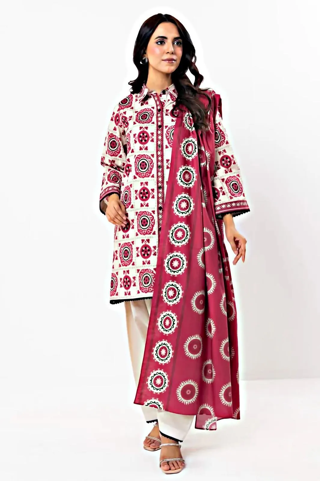 • Shirt Fabric: Dobby Lawn• Pattern: Printed• Shirt Front Pattern: Printed• Sleeves Pattern: Printed• Shirt Back Pattern: Printed• Trouser Fabric: Lawn• Trouser Pattern: Plain• Dupatta Fabric: Dobby Lawn• Dupatta Pattern: Printed• Number Of Pieces: 3 Pcs• Package Includes: 1 x Shirt, 1 x Trouser, 1 x Dupatta• Shirt Cutting: 3.0 Meter• Trouser Cutting: 2.5 Meter• Dupatta Cutting: 2.5 Meter• Color: White• Note: There might be an error of 1-3 cm due to manual measurement, and slight color differences may occur as a result of varying lighting and monitor effects.• Product Code: MZ32200002736BSAE