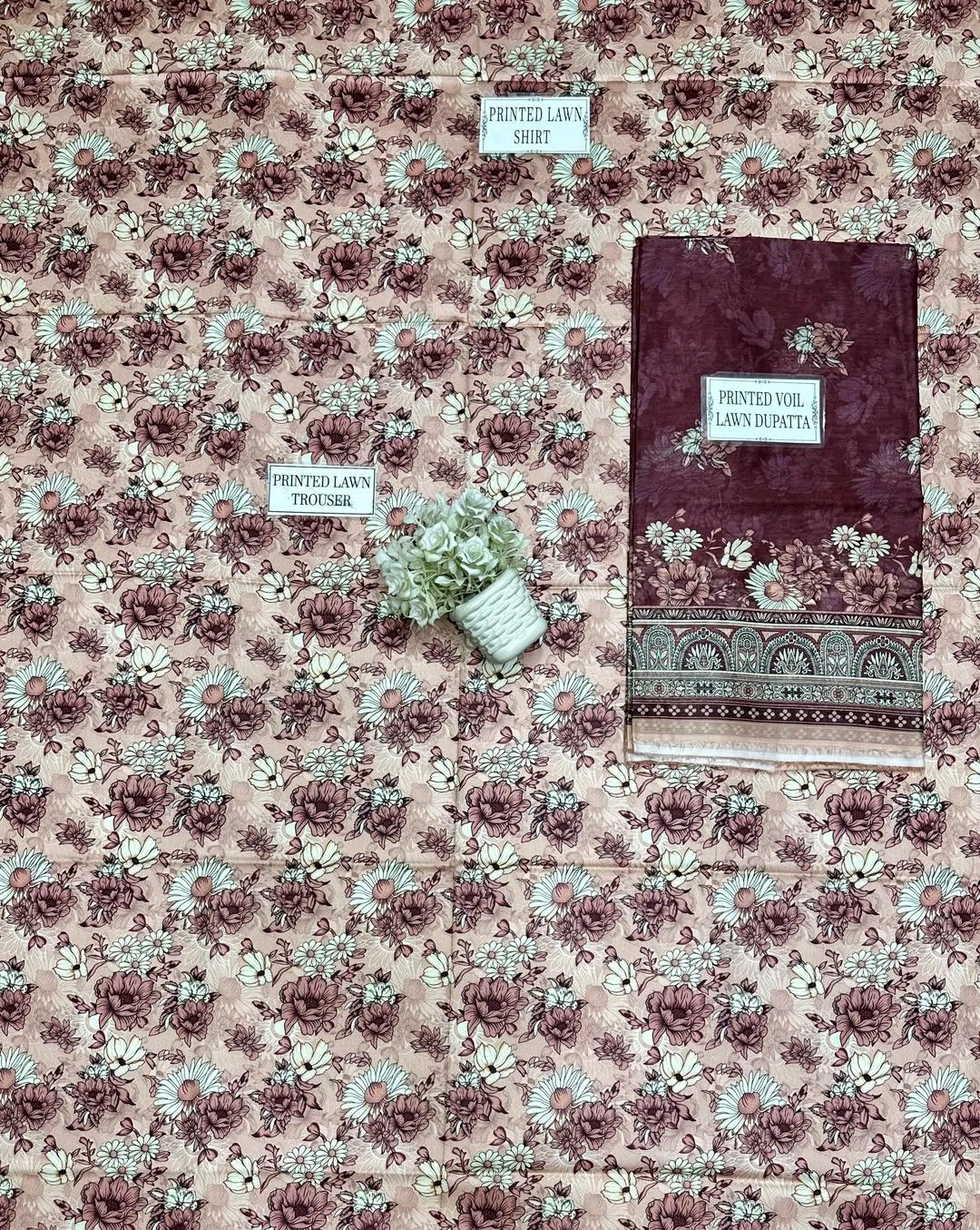 • Shirt Fabric: Lawn• Pattern: Printed• Shirt Front Pattern: Printed• Sleeves Pattern: Printed• Shirt Back Pattern: Printed• Trouser Fabric: Lawn• Trouser Pattern: Printed• Dupatta Fabric: Lawn• Dupatta Pattern: Printed• Number Of Pieces: 3 Pcs• Package Includes: 1 x Shirt, 1 x Dupatta, 1 x Trouser• Shirt Cutting: 3.0 Meter• Trouser Cutting: 2.5 Meter• Dupatta Cutting: 2.5 Meter• Color: Purple• Note: There might be an error of 1-3 cm due to manual measurement, and slight color differences may occur as a result of varying lighting and monitor effects.• Product Code: MZ32200002807BSAE