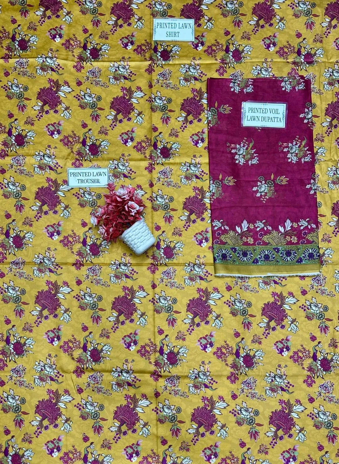 • Shirt Fabric: Lawn• Pattern: Printed• Shirt Front Pattern: Printed• Sleeves Pattern: Printed• Shirt Back Pattern: Printed• Trouser Fabric: Lawn• Trouser Pattern: Printed• Dupatta Fabric: Lawn• Dupatta Pattern: Printed• Number Of Pieces: 3 Pcs• Package Includes: 1 x Shirt, 1 x Dupatta, 1 x Trouser• Shirt Cutting: 3.0 Meter• Trouser Cutting: 2.5 Meter• Dupatta Cutting: 2.5 Meter• Color: Golden• Note: There might be an error of 1-3 cm due to manual measurement, and slight color differences may occur as a result of varying lighting and monitor effects.• Product Code: MZ32200002817BSAE