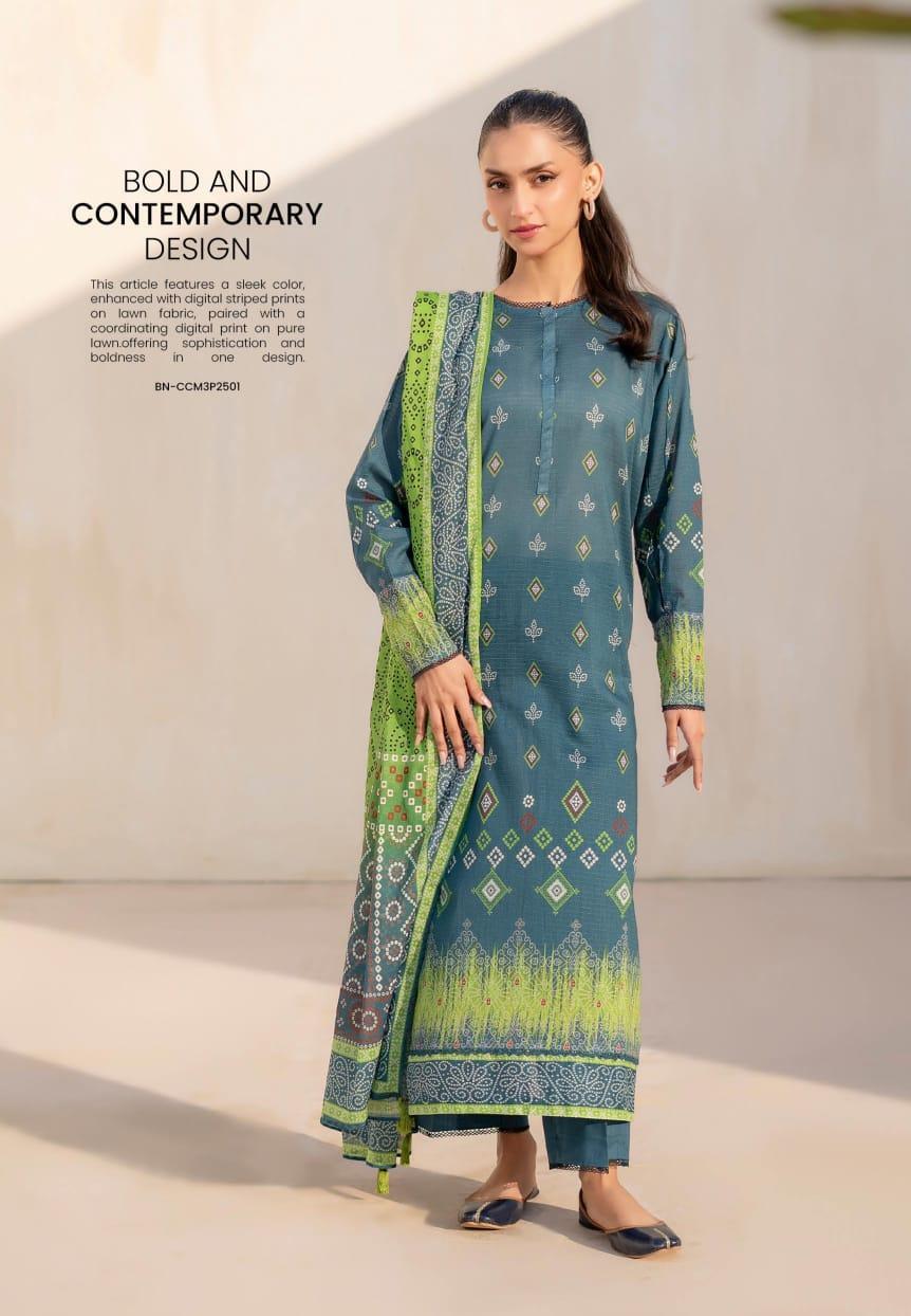 • Shirt Fabric: Lawn• Pattern: Printed• Shirt Front Pattern: Printed• Neckline: Printed• Sleeves Pattern: Printed• Daman: Printed• Shirt Back Pattern: Printed• Trouser Fabric: Lawn• Trouser Pattern: Printed• Dupatta Fabric: Lawn• Dupatta Pattern: Printed• Number Of Pieces: 3 Pcs• Color: Green• Package Includes: 1 x Shirt, 1 x Trouser, 1 x Dupatta• Shirt Cutting: 1.85 Meter• Trouser Cutting: 2 Meter• Dupatta Cutting: 2.5 Meter• GullJee Binaas *Chunri Charm* ? *Original* Lawn Collection 2025! Volume 01• ? *SHIRT*• Digital Printed Lawn Bana Dora Front• Digital Printed Lawn Bana Dora Back• Digital Printed Lawn Bana Dora Sleeves• ? ?? *DUPATTA*• Digital Printed Pure Lawn Dupatta• ? *TROUSER*• Dyed Cambric Cotton Trouser• Note: There might be an error of 1-3 cm due to manual measurement, and slight color differences may occur as a result of varying lighting and monitor effects.• Product Code: MZ1330200415JOWE
